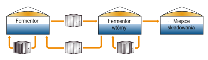 gdzie odbywa się proces ultradźwiękowy. Następnie substrat powraca do fermentatora lub do wielu fermentatorów.