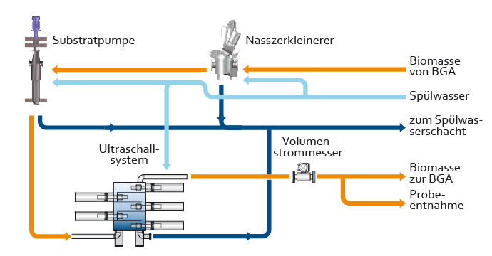 Mit dieser innovativen Technologie können insbesondere schwer aufschließbare, faserige und raue Biomasse-Suspensionen (Gras, Mist etc.) behandelt werden. Der Betreiber bleibt somit unabhängig von den gut fermentierbaren Edelsubstraten (z.B. Mais). Vorzugsweise wird ein Rezirkulationsstrom aus dem Nachgärer in den Hauptfermenter mit dem BIOSONATOR bearbeitet.