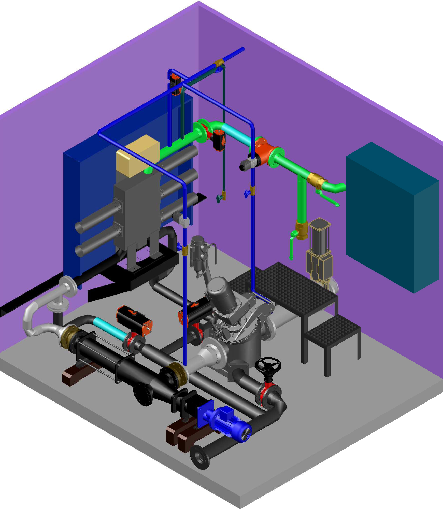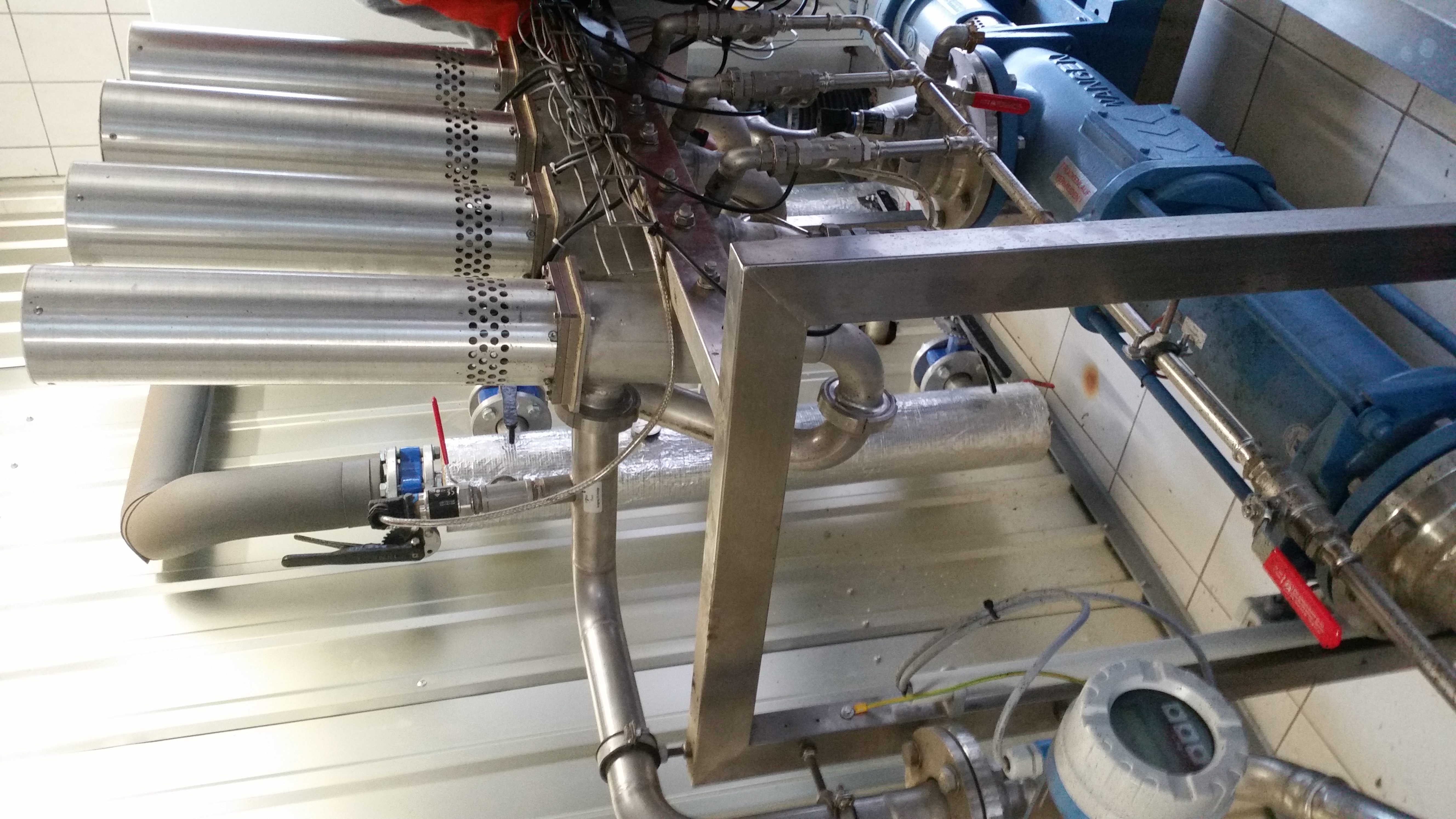 Die einzelnen Elemente sind mit Edelstahlrohren (DN 100 und DN 65) verbunden.