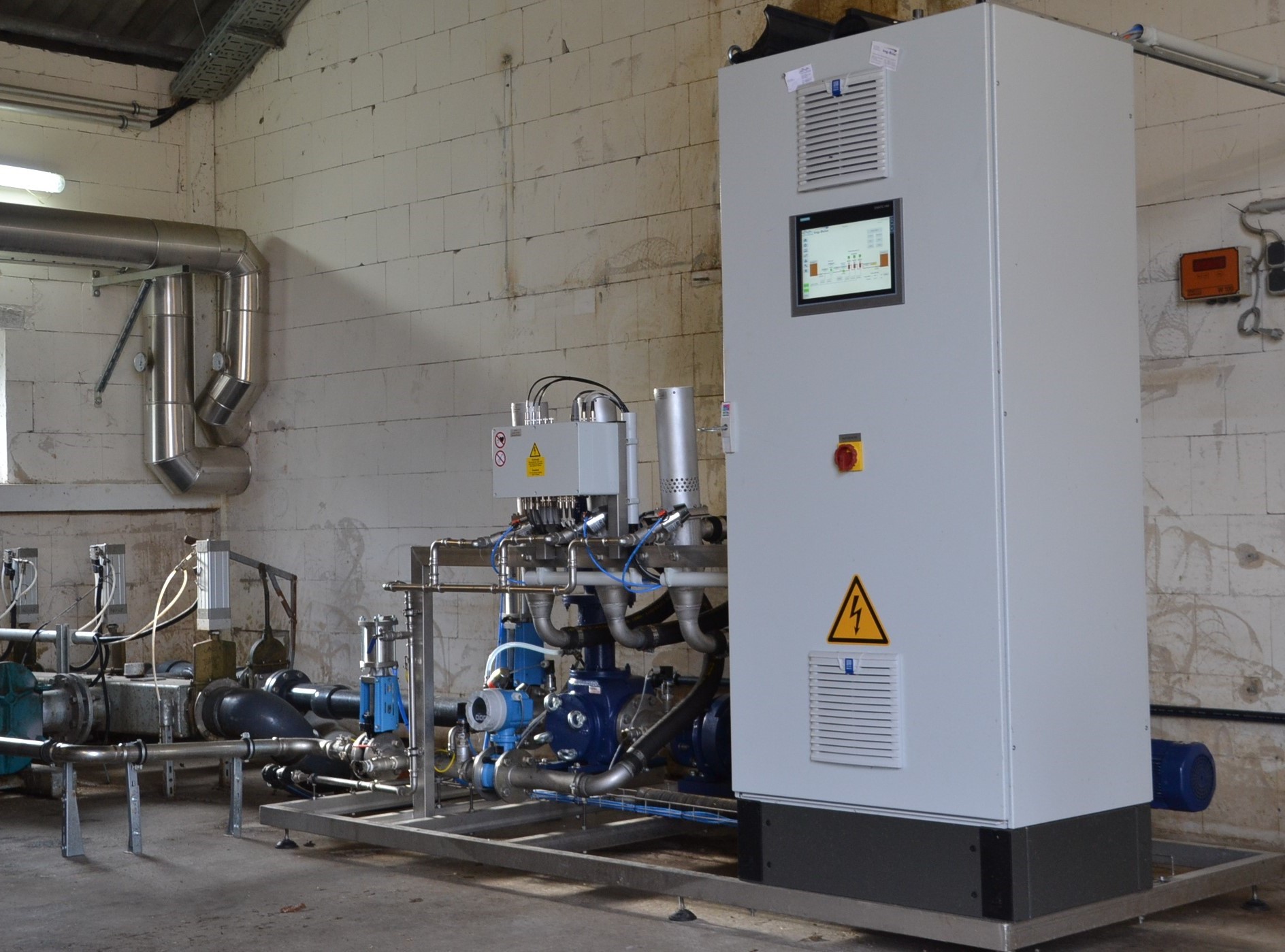 - Modifizierte Exzenterschneckenpumpe mit Stirnradgetriebemotor (1,5 kW Antriebsleistung) und Frequenzumformer