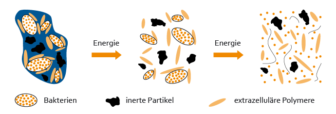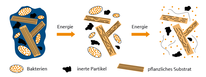 Die beschallte Biomasse ist als Substrat für aktive Mikroorganismen leichter verfügbar